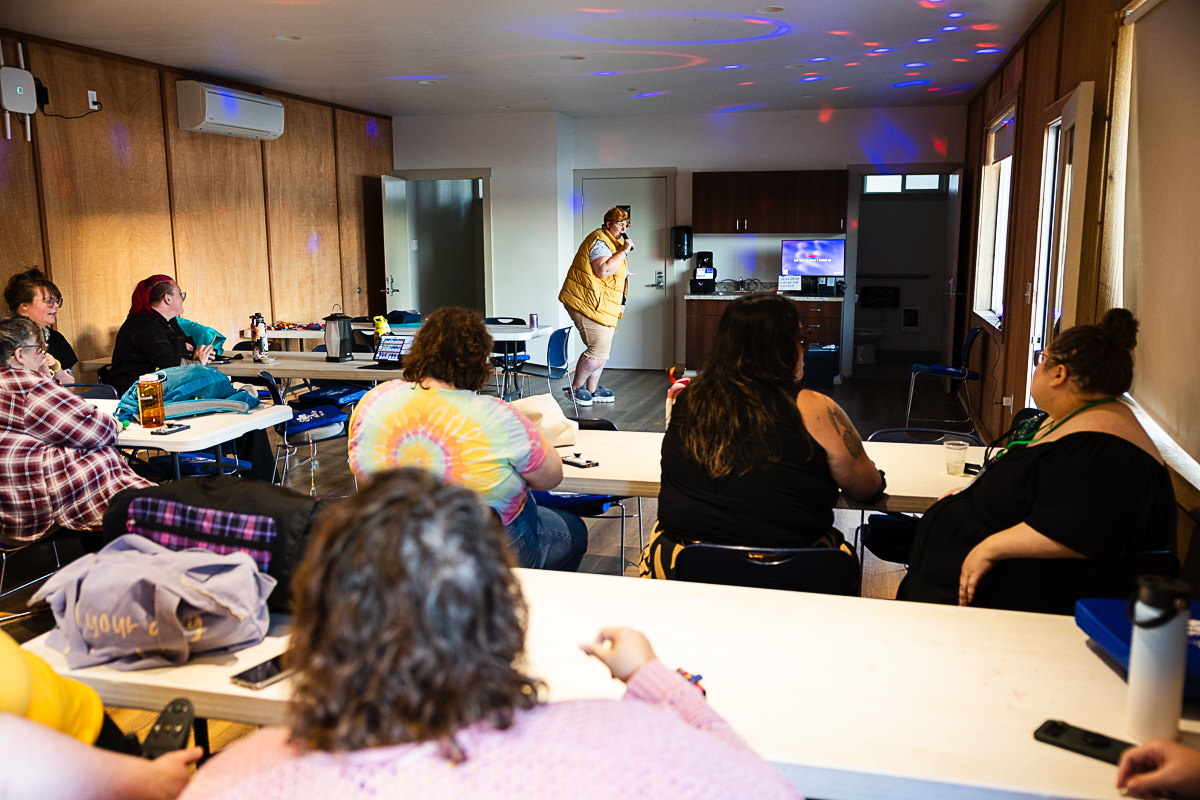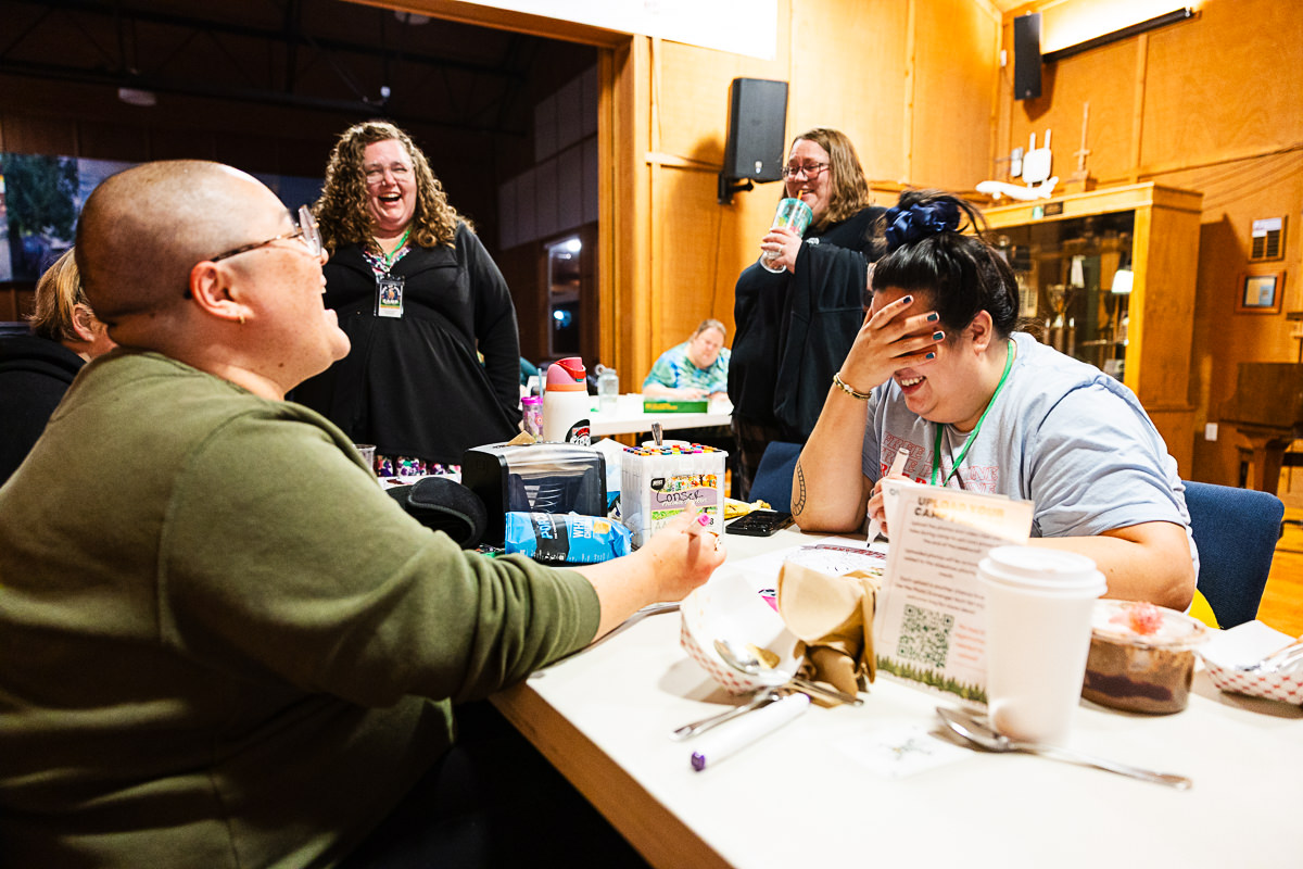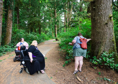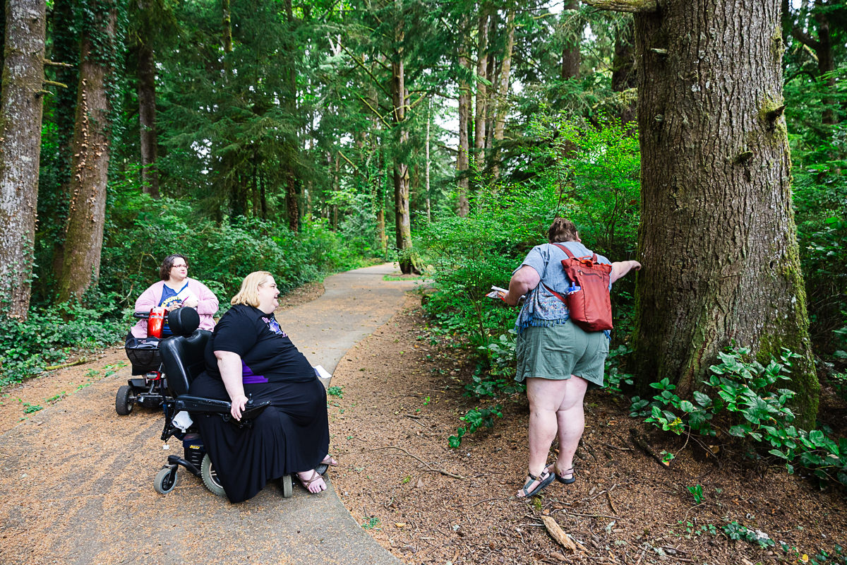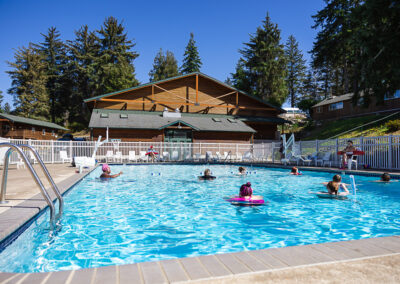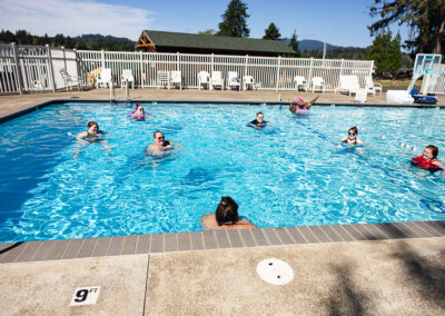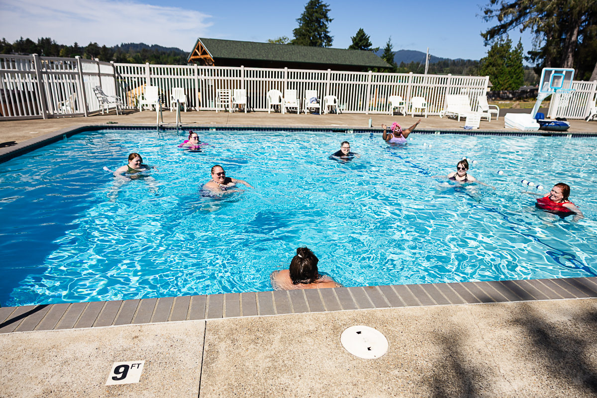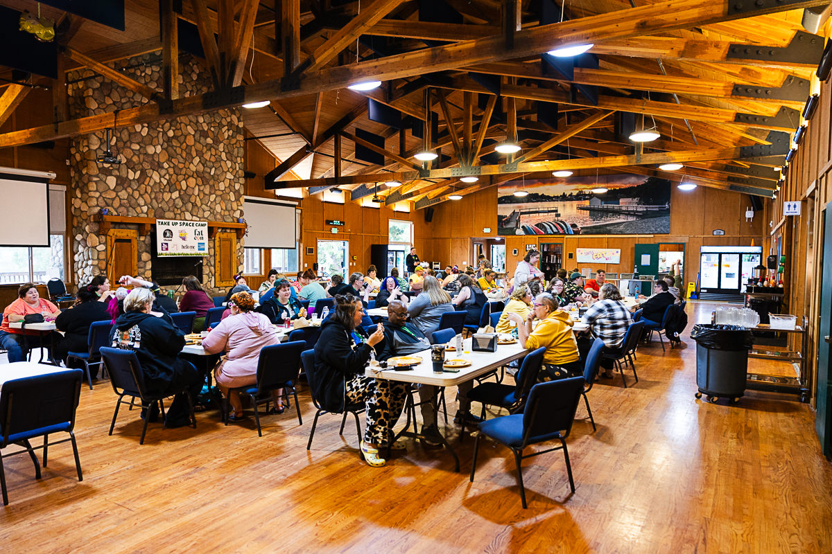 This camp is really special in that it is the only ADA camp in Oregon (and possibly further). They were thoughtful in their renovations and all buildings are ADA accessible. Bathrooms, showers and main floor cabins are all wheelchair accessible. The camp has paved pathways that go to most areas of camp, entrances to all buildings have ramps, there are stairs with sturdy handrail for the pool and the whole camp is quite compact so while there is a hill, things are close together so there’s no long treks up and down steep hills. We’re looking into renting powered vehicles/devices for extra help with moving people around camp if needed. There will be a service for help dropping off and picking up your stuff directly to/from your cabin.